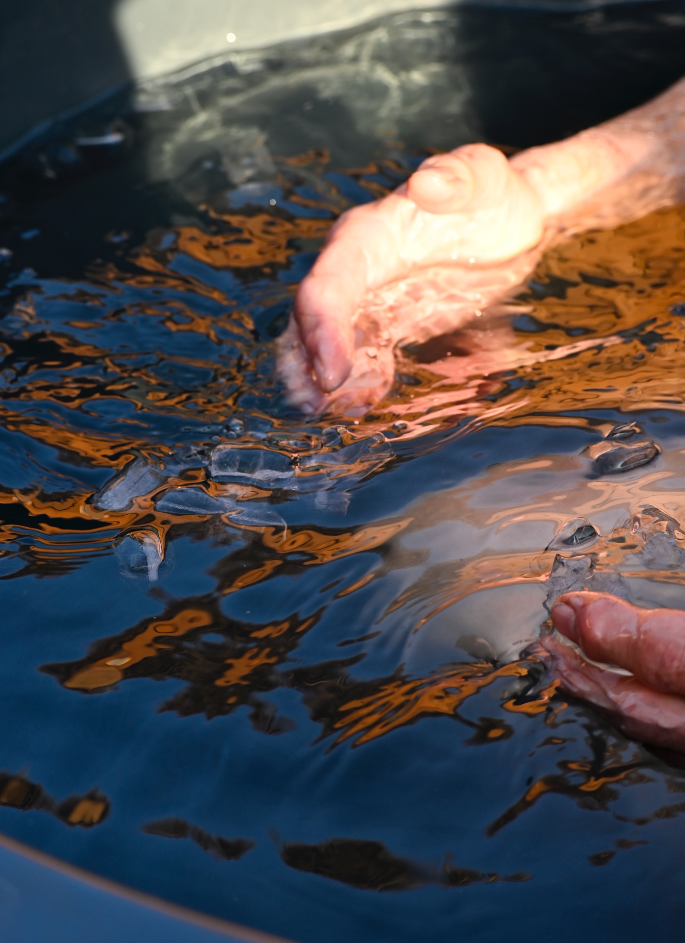 - Onder begeleiding het ijsbad instappen